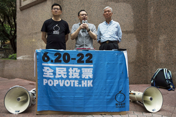 Protest march follows informal poll on democratic reform branded by China as “illegal and invalid”.
