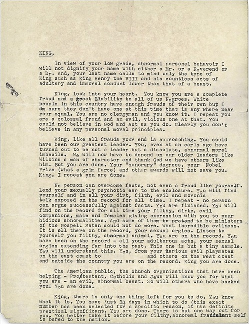 "’There is only one thing left for you to do. You know what it is. You have just 34 days,’ the letter says, apparently urging King to commit suicide. Fortunately, King didn’t back down. But the letter is a terrifying reminder of what government surveillance agencies can be capable of."