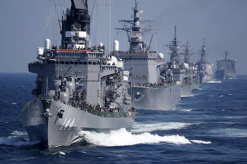 The Maritime Self-Defense Force—Japan’s navy—paraded nearly 40 vessels as part of a fleet review Sunday, while patrol planes dropped depth bombs and the pilots of the Blue Impulse jets showed off their acrobatic skills.