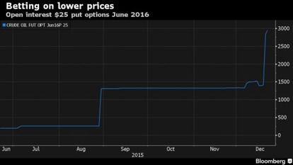 Oil speculators are buying options contracts that will only pay out if crude drops to as low as $15 a barrel next year, the latest sign some investors expect an even deeper slump in energy prices.